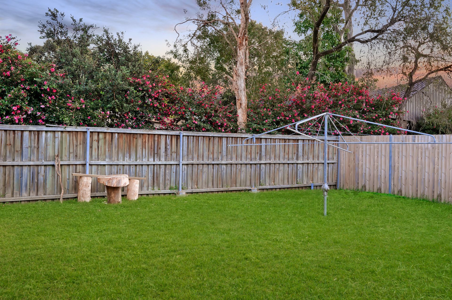 - North-West facing rear, flat level lawn, security alarm system