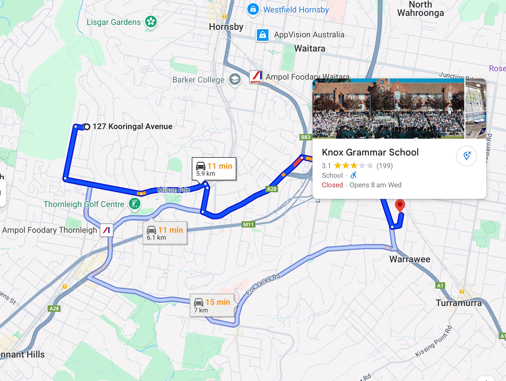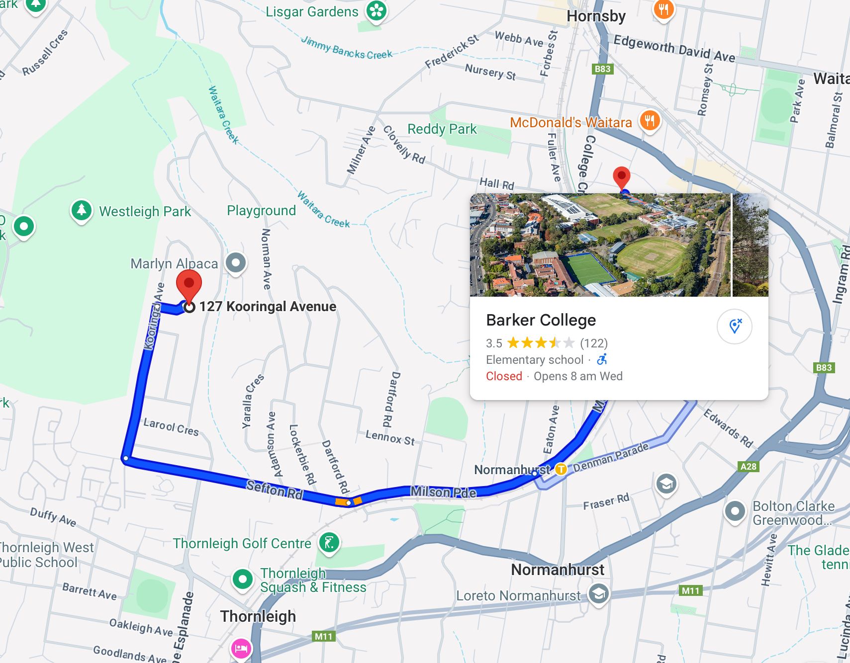- 2.3 km to Thornleigh Station and 4.7 km to Waitara Station