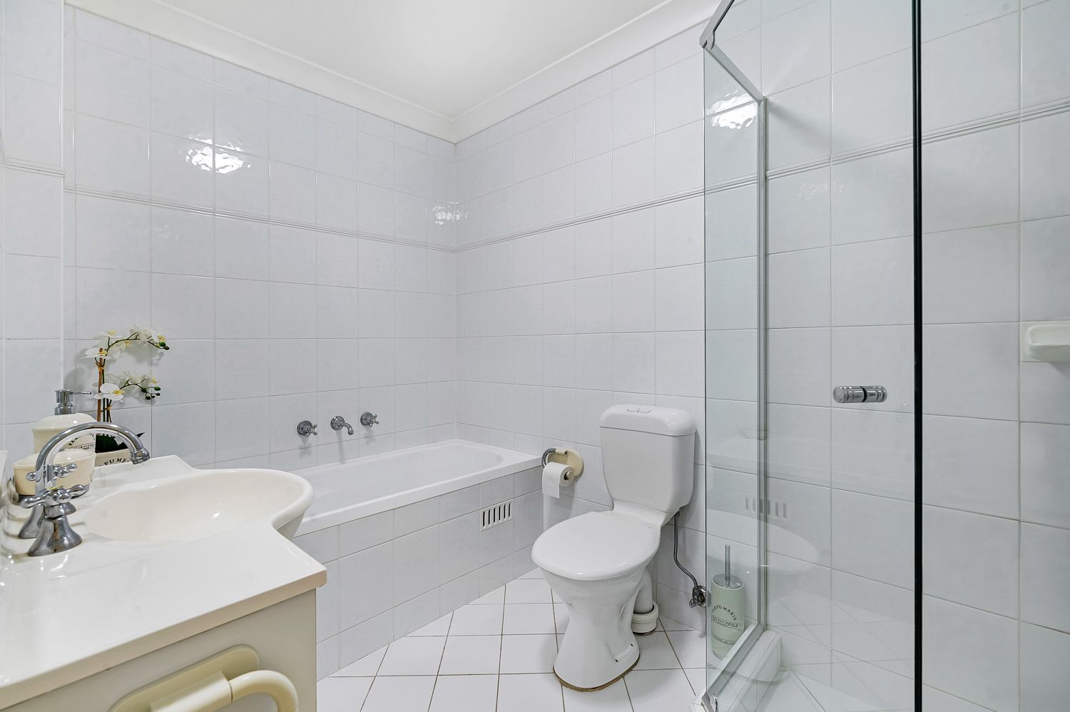 • Stylish bathroom with separate bath and shower