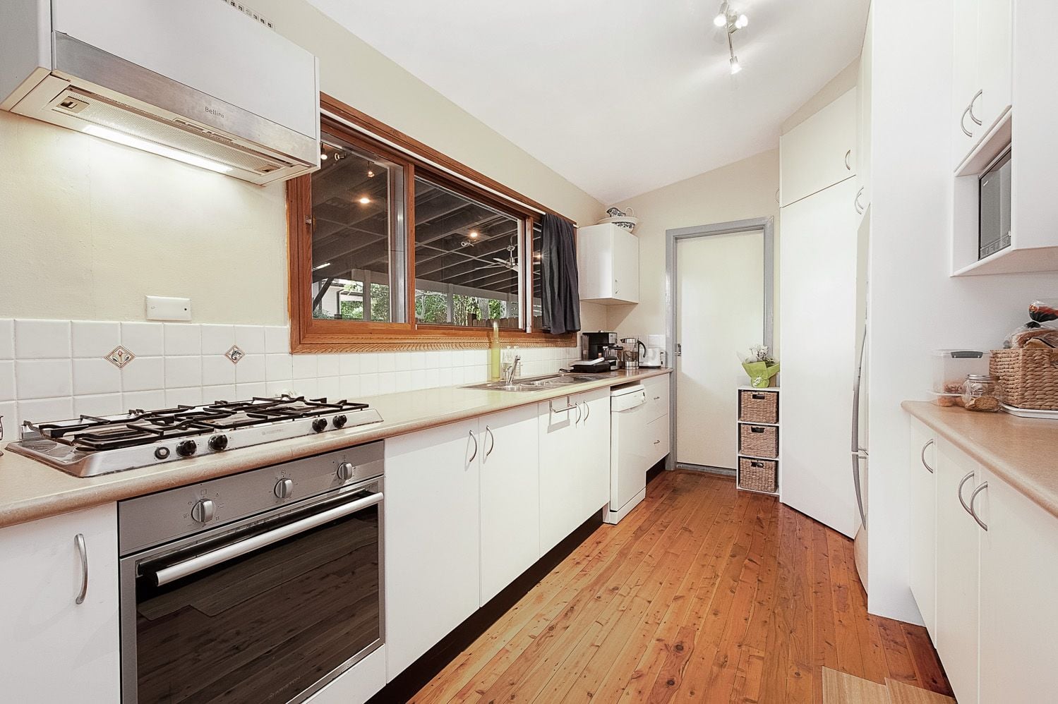 - Kitchen with gas cooking flows onto front family room