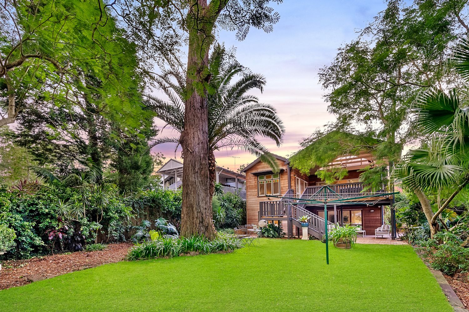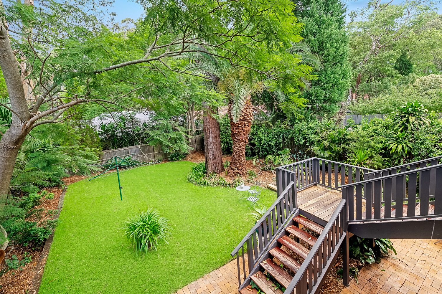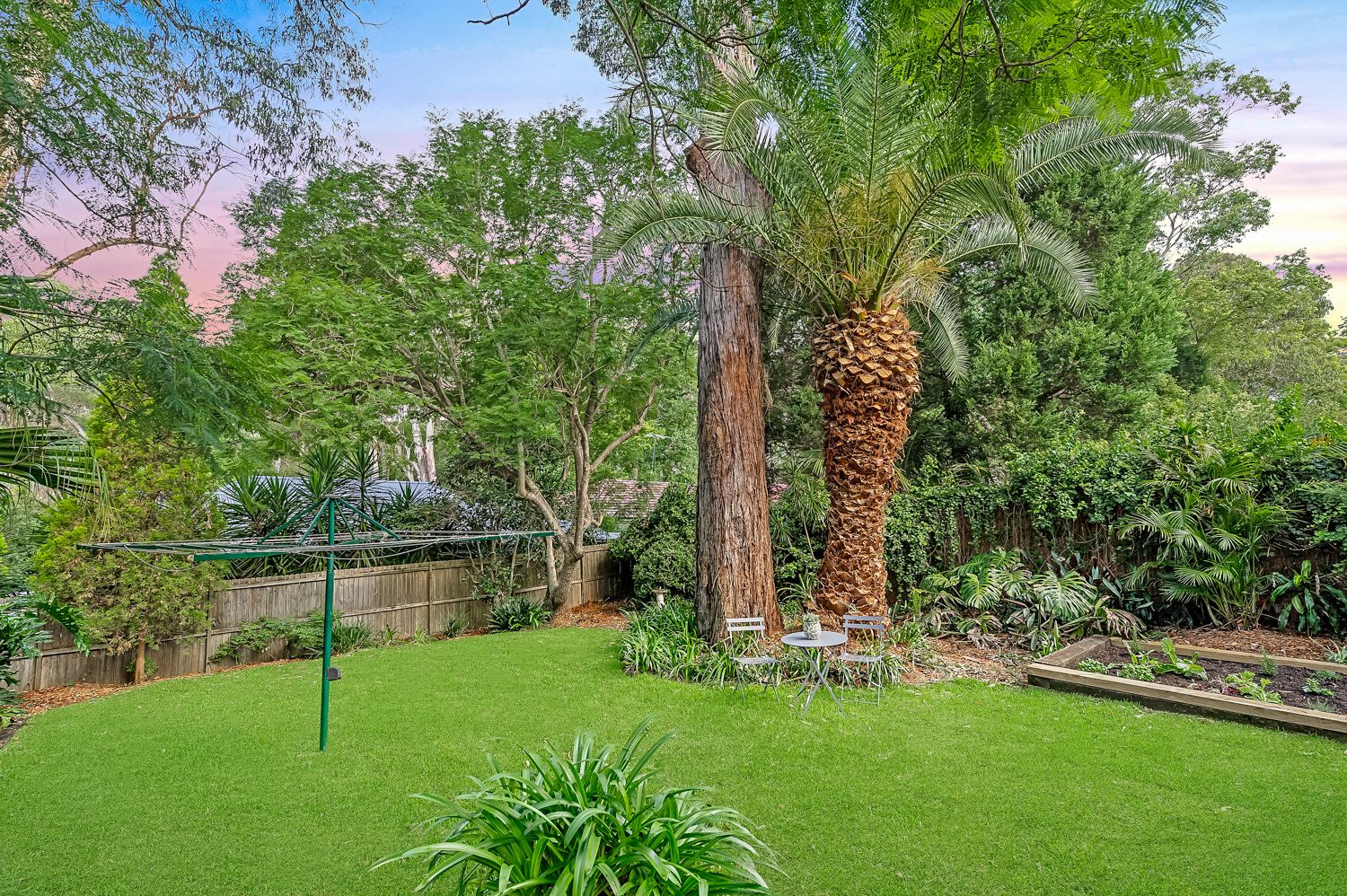 - Landscaped backyard with lush greenery, offering a private and peaceful retreat.