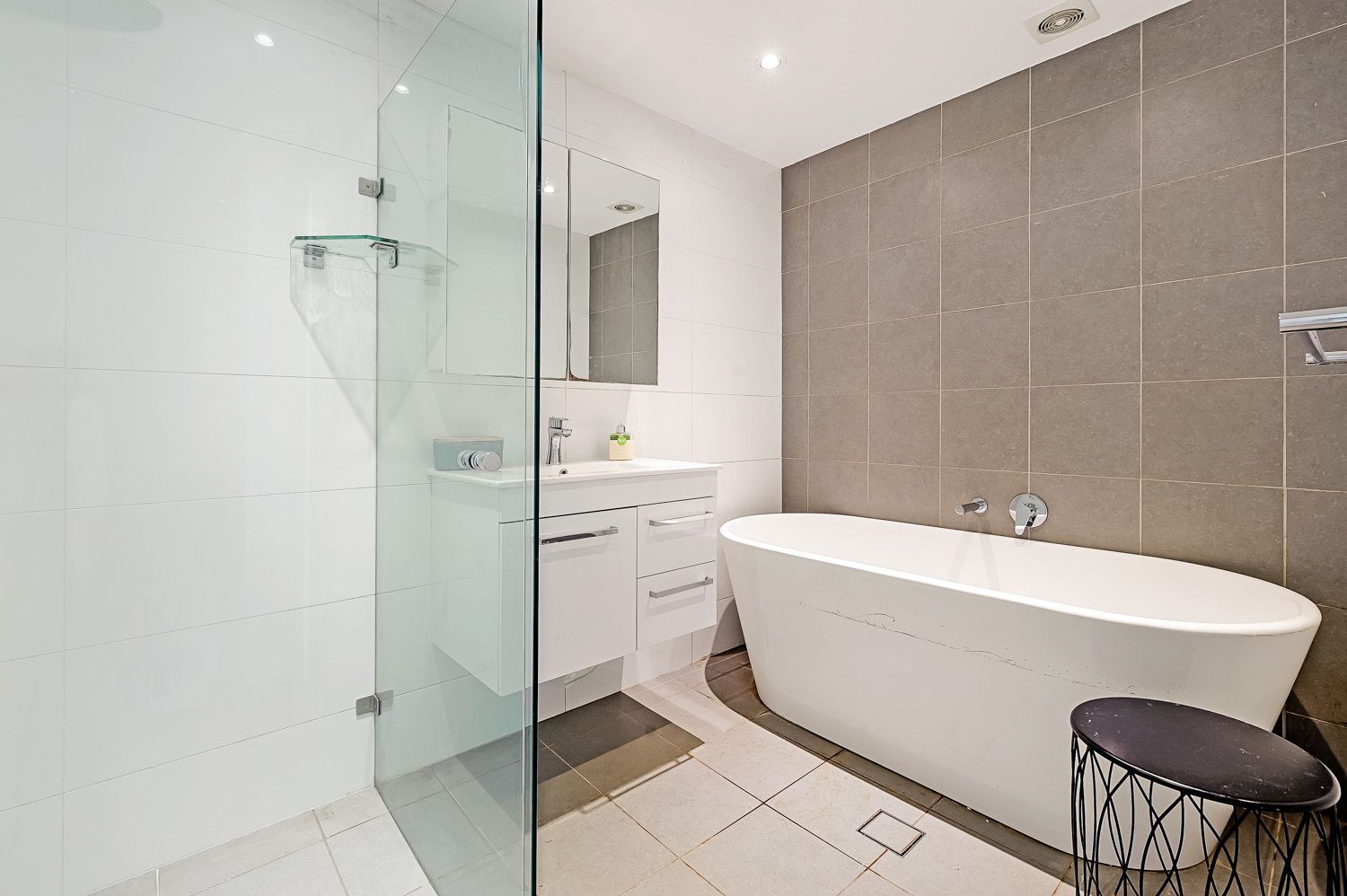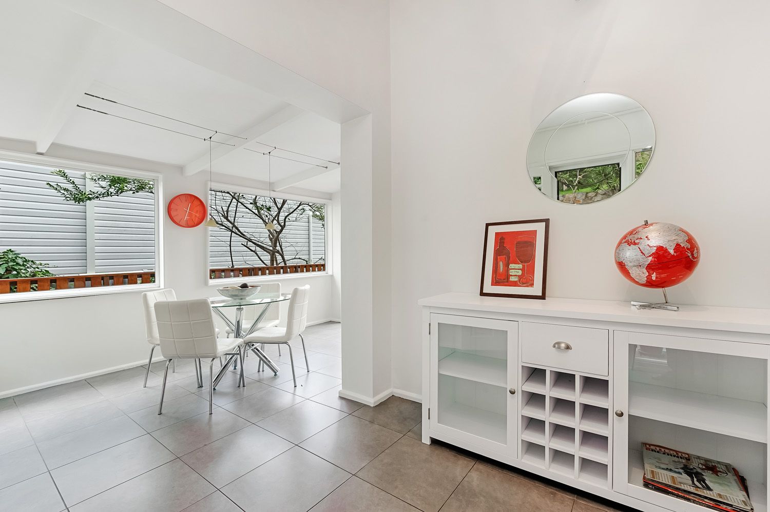 - Modern light filled tiled family area