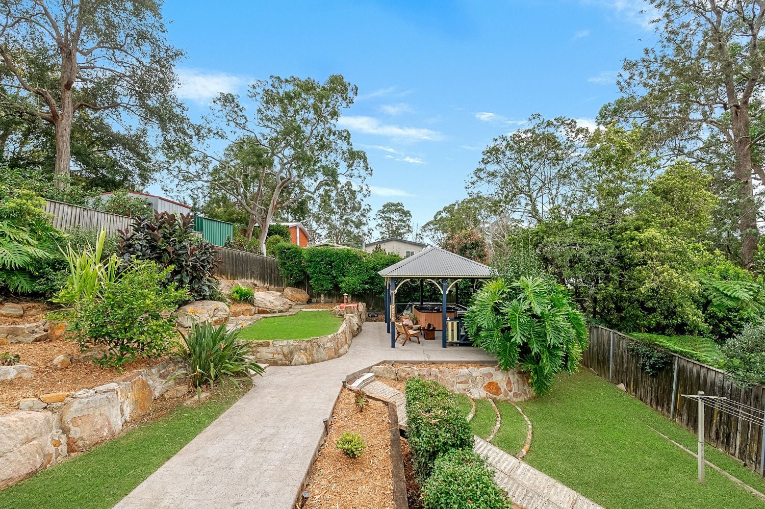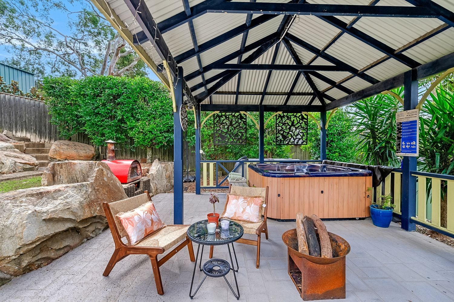 - Relaxing outdoor spa set beneath a pergola