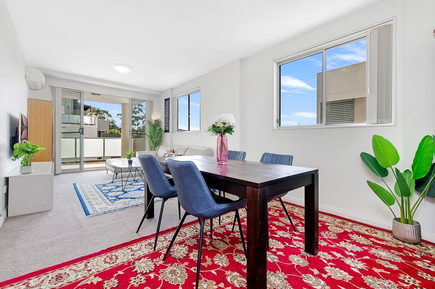 - Open plan living and dining area seamlessly extends to the balcony for indoor-outdoor living
