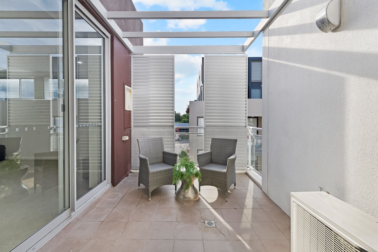 - Private balcony offering a quiet outdoor retreat with room for seating or small gatherings.