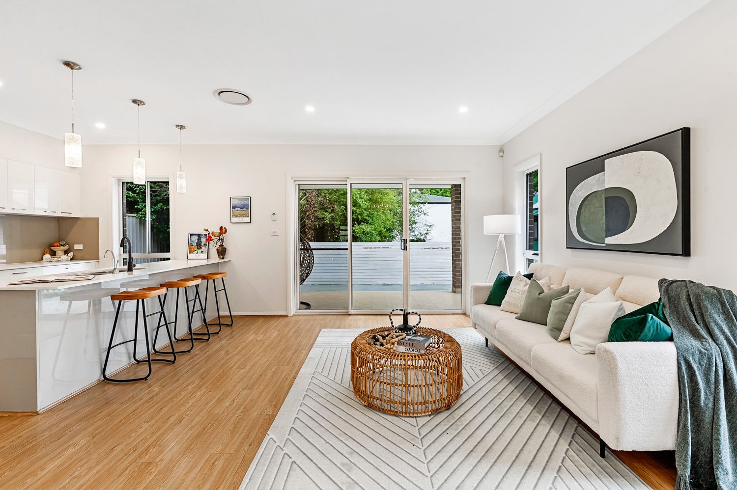 - Light-filled open plan living and dining areas designed for relaxed everyday living and easy entertaining