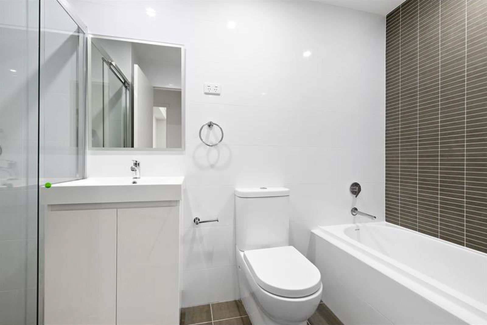- Modern bathroom offers a shower and bath