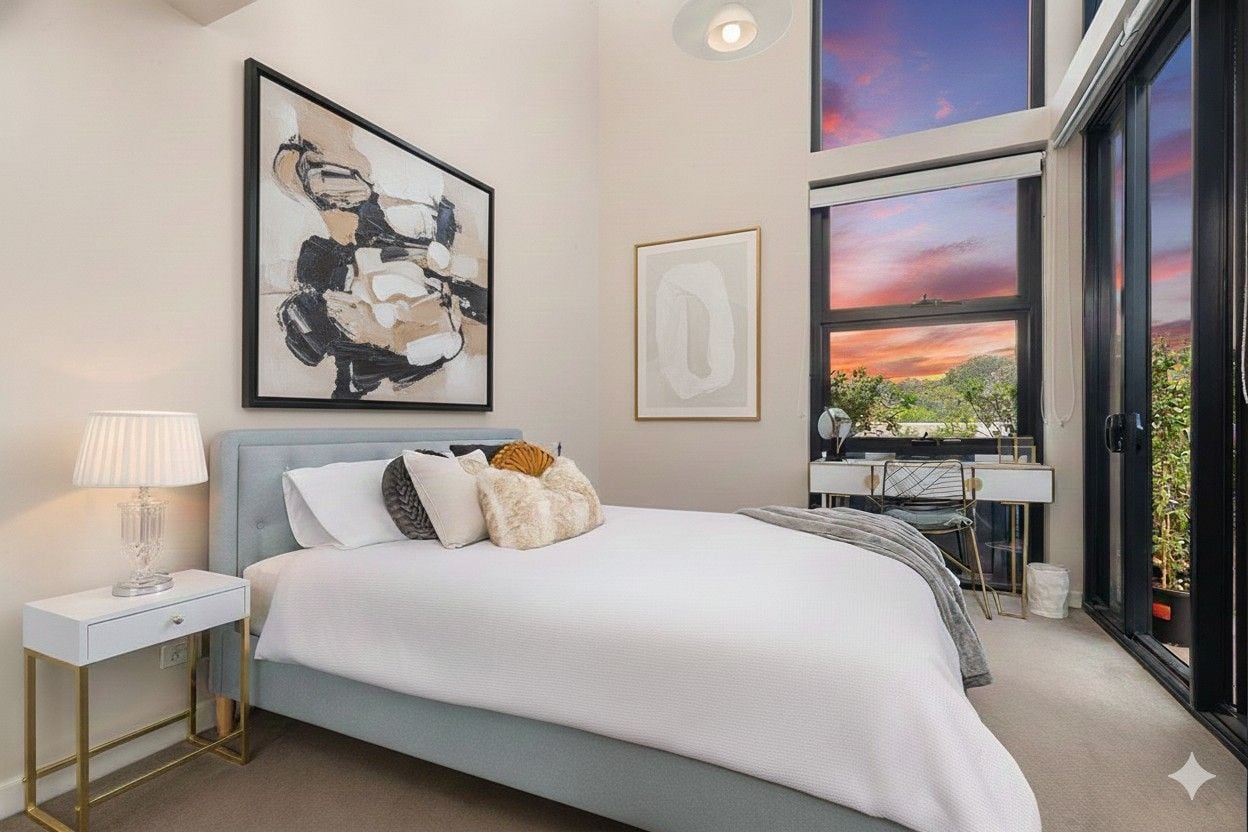 Bathed in natural light and thoughtfully designed across a split level layout, the home exudes a penthouse style ambience, allowing this dual level apartment to truly stand out from the crowd. Channelling a refined New York flavour, the residence wraps around the north east corner of the building, welcoming an abundance of natural light through its dramatic double height windows and ceiling, creating an immediate sense of scale, openness, and architectural presence.